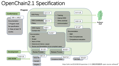 首先OpenChain鼓励企业和有兴趣的个人参与到社区里面来,同时针对具体的需求,OpenChain组织也给出了具体的指导和规范。