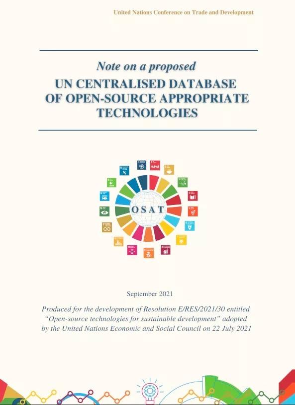 联合国贸易和发展会议认为,应建立开源技术中央数据库,加快推动可持续发展目标相关部门创新工作方法,尽量减少法律或财政障碍。这对传播全球知识储备非常重要,特别是在发展中国家。目前,还没有全面开源技术中央数据库,Appropedia.org也许是最好的例子。然而,联合国贸易和发展会议认为,“许多组织、非营利组织和营利性公司正在开发OSAT,并维护现有的小规模数据库。虽然有许多OSAT,但它们分散在各种特定技术的数据库中。同时,仍然明显需要提高OSAT的使用率。因此,迫切需要一个可信的、全球集中的开放源码数据库(COSD)。在全球范围内,一个COSD库将提供一个一站式服务,每个人都可以使用它来解决当地的挑战”。