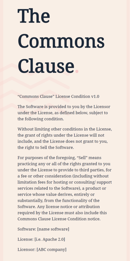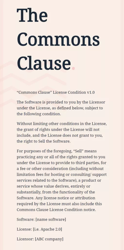 共用条款是一个130字的附加条款,用于限制其他商业服务提供商自行销售软件。然而,它确实允许组织使用和构建授权软件。