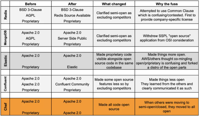 然而,对于社区和商业服务提供商来说,这些变化仍然存在争议。如:一个软件项目可能采用多个开源项目,而这些开源项目采用不同的许可证。