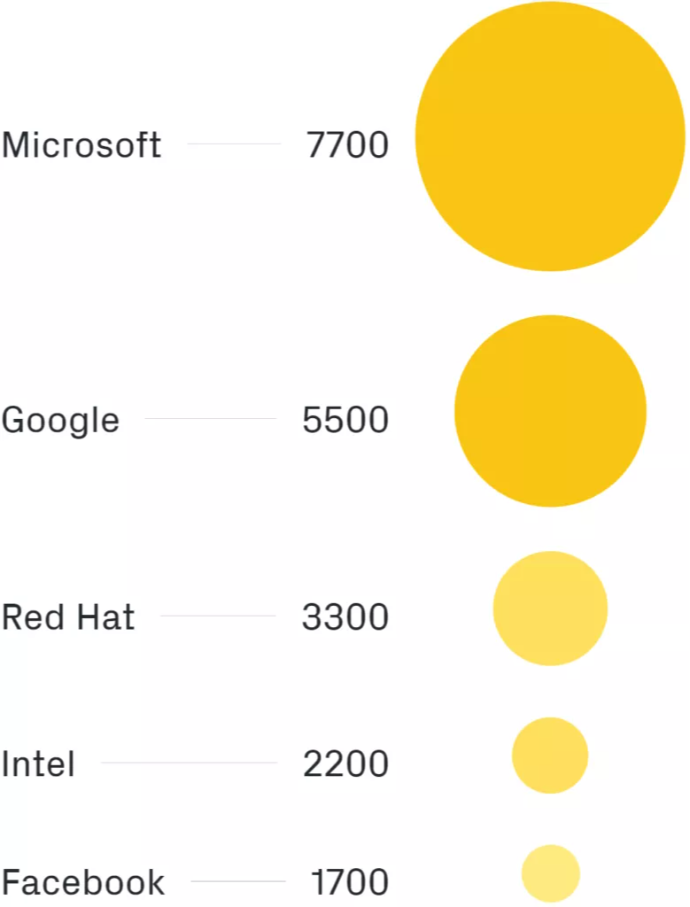 尽管不少大的开源软件项目(数十亿美元的业务)是由单个开发人员白手起家建立起来的,但许多最新、最成功的项目都是世界上最大的科技公司的产品。