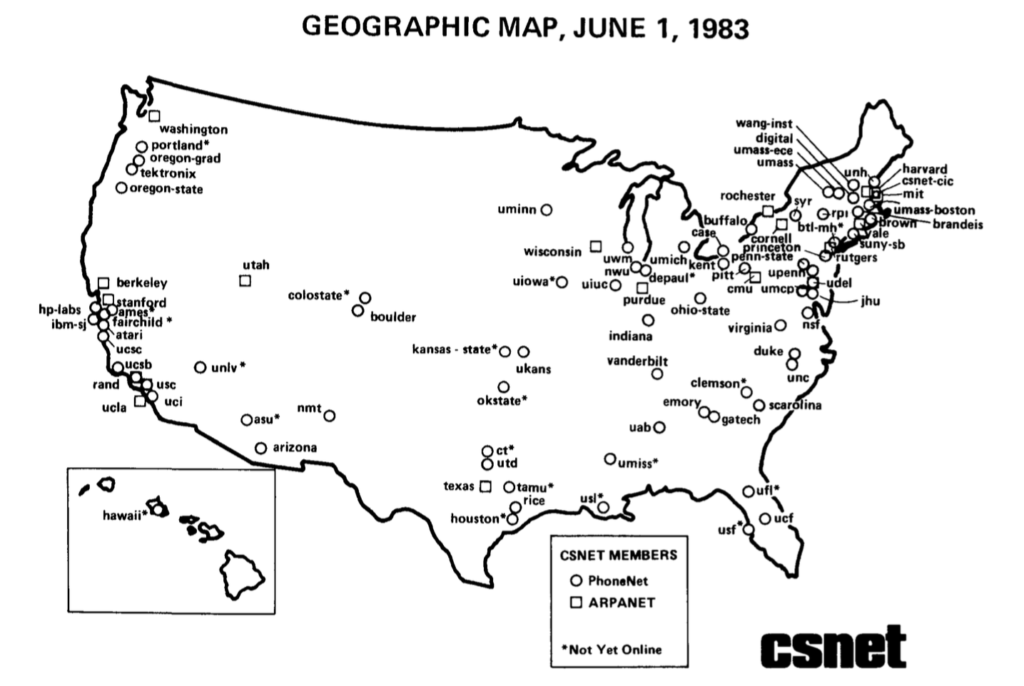 大学是最早使用计算机软件和硬件的机构,他们开始与其他大学分享错误信息、错误修复方法,甚至软件改进的方法。此后不久,大学开始与公众分享免费使用的软件(称为公共领域软件)。在整个1970年代和80年代,阿帕网和CSNET都支持这一行动,促进了学术机构之间的电子通信。