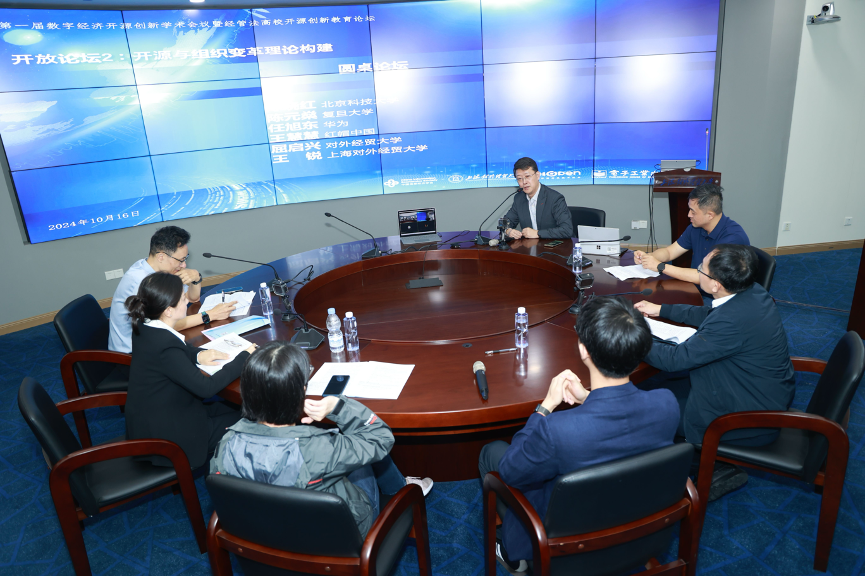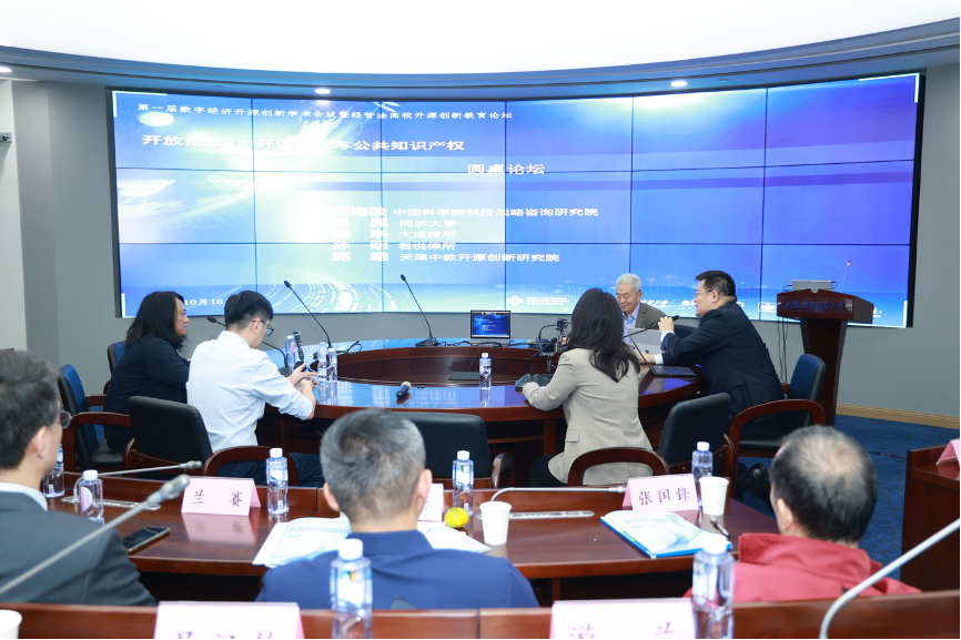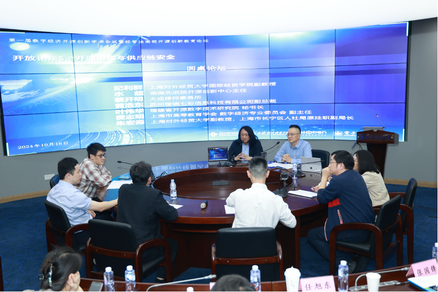 圆桌嘉宾:郭晧(天津中教开源创新研究院)、纪利群(上海对外经贸大学国际经贸学院副教授)、水超(湖南先进院开源创新中心主任)、蔡开明(大成律师事务所)、黄浩东(苏州棱镜七彩信息科技有限公司副总裁)、叶伟华(福建省开源数字技术研究院秘书长)、费志明(上海市高等教育学会数字经济专业委员会副主任)、朱宏淼(上海对外经贸大学副教授,上海市长宁区人社局原挂职副局长)