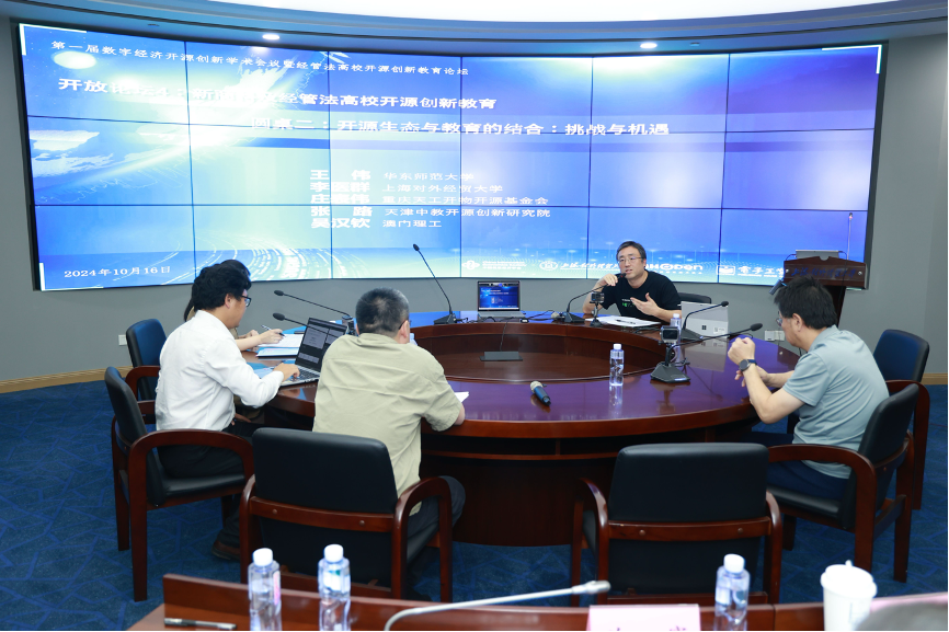 本论坛由华东师范大学王伟教授主持,聚焦开源教育在新商科及经管法高校中的实践与发展,吸引了众多教育界与开源领域的专家学者参与。华东师范大学的王伟教授、湖北大学的游兰教授以及天工开物开源基金会的庄表伟执行副秘书长等业界知名人士,围绕“开源与科研、教学的深度融合”、“开源在高校人才培养中的创新路径”等议题展开了深入探讨。